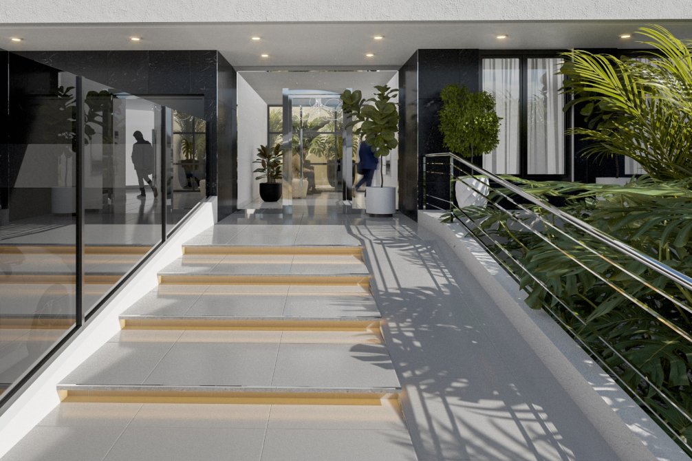 CARPINTERIA DE LOS DEPARTAMENTOS CON PUERTAS CON MARCO ANTIBARRETA Y ANCLAJE MULTIPLE. TODOS LOS MARCOS Y VENTANAS DE ALUMINIO A30 DE MARCA ALUAR CON DOBLE VIDRIO