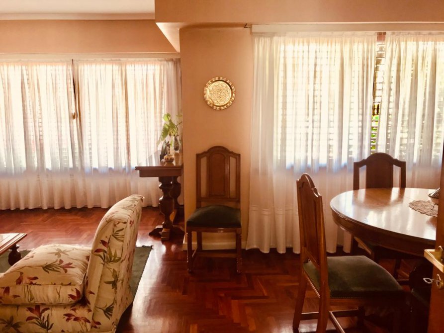 - Amplio living con ventanales al frente y pisos de parquet.