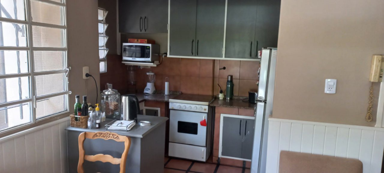 - COCINA CON MUEBLES SOBRE Y BAJO MESADACON VISTA AL JARDIN DEL FONDO
