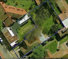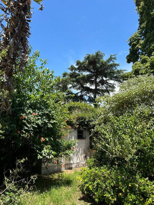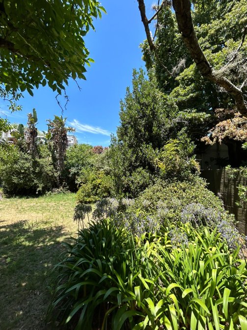 Excelente jardín sobre lote irregular, con añosa arboleda.